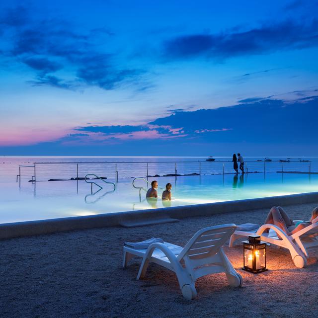 Aminess Maravea Camping Resort is een luxueuze familiecamping aan de prachtige Adriatische kust in Kroatië. Het wordt omgeven door een eeuwenoud eikenbos en ligt pal aan de kristalblauwe zee. Om de camping heen liggen uitgestrekte wijngaarden en het centrum van Novigrad vind je al vier kilometer verderop. Wat erg leuk is, is om de fiets te pakken, zo kun je ook nog eens de natuur en het landschap van Kroatië ontdekken! Deze kun je op camping huren. Vooral voor gezinnen met kinderen is de camping erg populair, want er is van alles te doen: naast de talloze sportactiviteiten, worden er regelmatig leuk workshops georganiseerd en zijn er animatieprogramma’s voor alle leeftijden. Maar de eyecather van de camping is toch wel het nieuwe zwembad: een heuse, met zout water gevulde, infinity pool direct aan zee. Niet alleen erg mooi, maar ook super relaxed. Wil je meer ontspanning, dan biedt het wellnesscenter uitkomt. Deze is voorzien van een sauna, jacuzzi, rustruimte en fitnesscentrum. En bovendien kun je er allerlei heerlijke behandelingen ondergaan…