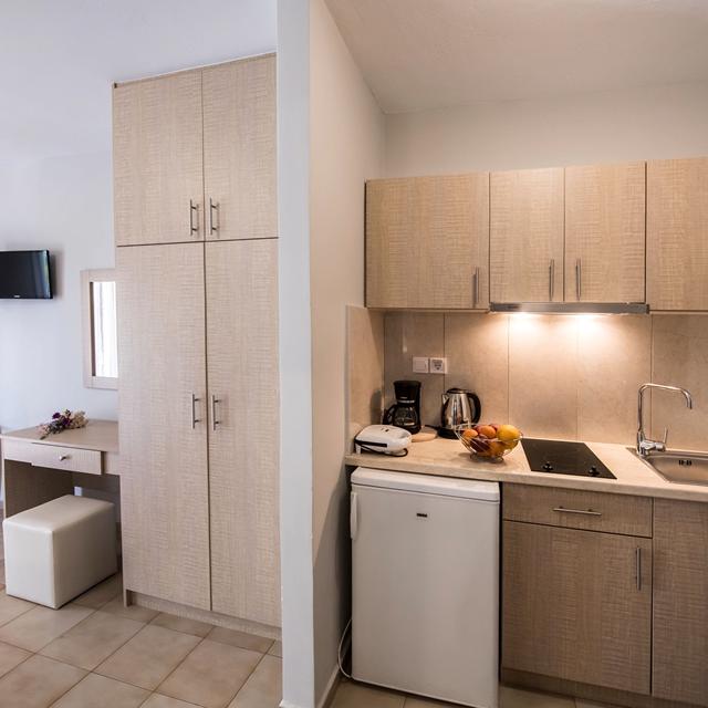 Appartementen Christina Comfort is omgeven door een groene oase en doet haar naam zeker eer aan. Hier kun je comfortabel verblijven op een rustige locatie. De moderne appartementen zijn ruim en hebben allemaal een balkon met uitzicht over de bergen, het zwembad of de zee. Zie je jezelf al zitten? De dagen beginnen hier sowieso altijd goed, want het ontbijtje staat iedere morgen voor je klaar.