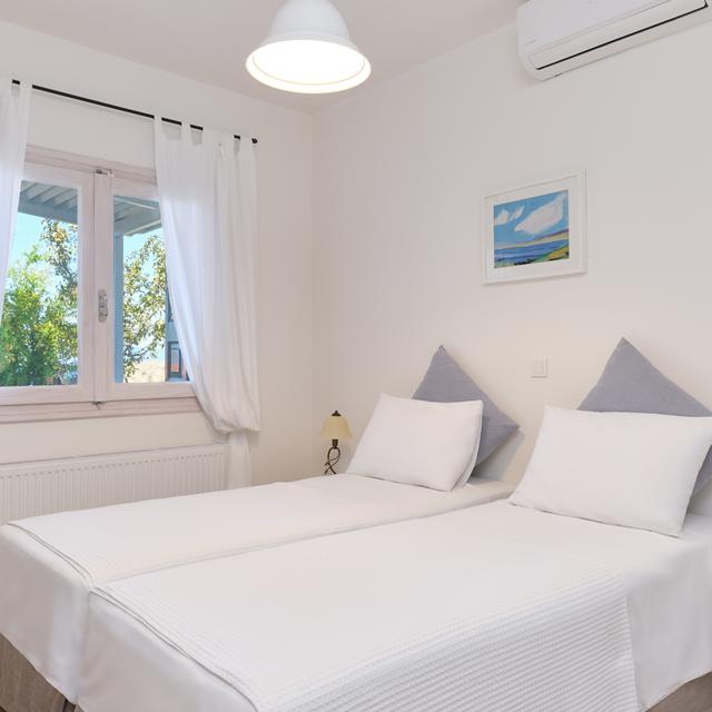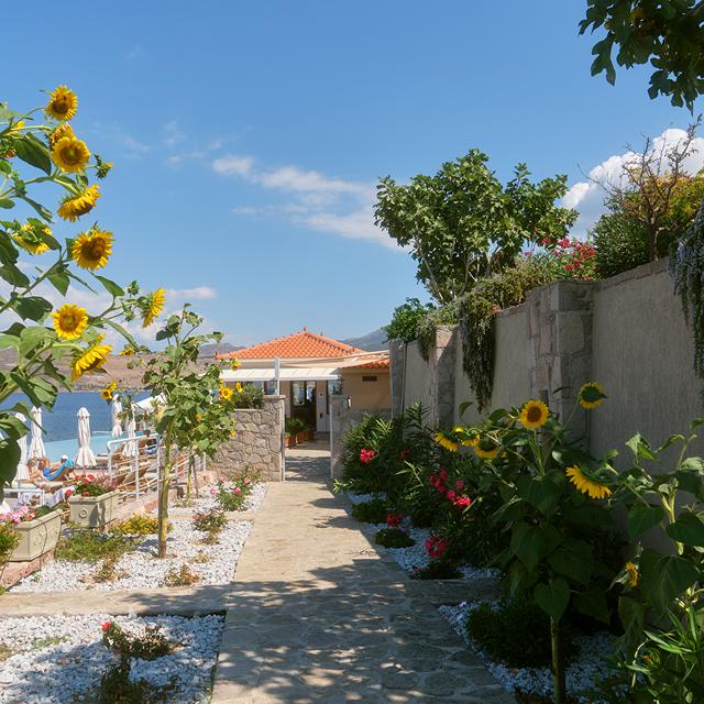 Vanaf de infinity pool kijk je uit op de glinsterende zee en de langsvarende bootjes, terwijl de comfortabele ligbedjes je uitnodigen om weg te dromen in de warme Griekse zon. Als je eenmaal in deze prachtige omgeving zit, wil je eigenlijk nergens anders heen. Toch is het de moeite waard om de omgeving te verkennen, zoals het indrukwekkende klooster Moni Limonos of de pittoreske oude stad Molyvos.