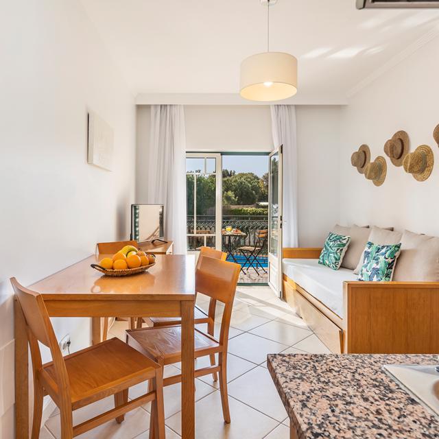 Voor afkoeling kun je ook lekker bij de accommodatie blijven. Er zijn twee fijne buitenzwembaden en aparte kinderbaden voor de kleintjes. Dit alles is omgeven door een groen grasveld met genoeg schaduwplekken onder de vele loofbomen. De Portugees ingerichte appartementen zijn ruim en voorzien van alle gemakken. Geniet van de rust en het uitzicht vanaf je eigen balkon of terras.