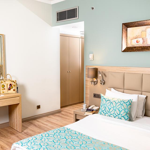 Er zijn verschillende type kamers te boeken: van een fijne 1-persoonskamer, tot een luxe familiekamer met 2 ruimtes. Alle kamers zijn echter modern ingericht en voorzien van een moderne badkamer en een balkon met uitzicht op de tuin, het zwembad of de zee.