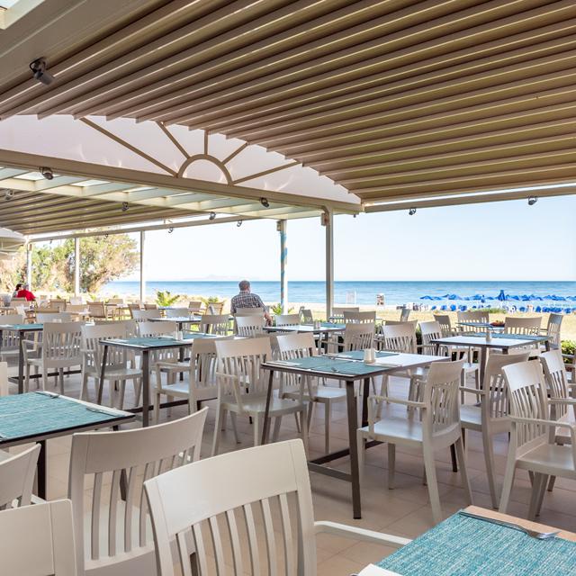 Het hotel heeft een modern en fris interieur, met kamers die een balkon of terras bieden en uitzicht hebben op de zee, het zwembad of de groene tuin. Wil je net meer iets meer luxe? Er zijn ook kamers met  een swim-up gedeelte of met een jacuzzi. Voor de warme dagen is er een heerlijk zwembad met een apart kinderbad en comfortabele ligstoelen. Een verfrissend drankje heb je zo besteld bij de gezellige poolbar. Het hoogtepunt van de dag is het heerlijke ontbijt dat wordt geserveerd in Manoli’s Sunrise Restaurant. Hier kun je de dag in alle rust beginnen met een prachtig uitzicht op zee. Maar ook ‘s avonds geniet je hier van een heerlijk diner.