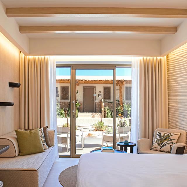 De sfeervol ingerichte kamers van het hotel hebben allemaal een balkon of terras. Voor een verblijf met het hele gezin zijn er ook speciale familiekamers. De lijst faciliteiten van Hotel Mitsis Rinela Beach Resort & Spa is bijna oneindig. Je kunt hier windsurfen, kanoën of tennissen, maar natuurlijk ook op een bedje liggen bij een van de zwembaden. En de luxe spa biedt, in een 1001-nacht decor, bijzondere behandelingen, met bijvoorbeeld rozenbloesem, tropisch fruit of zelfs chocolade.