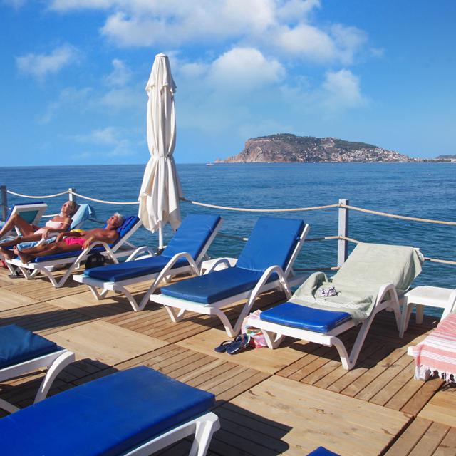 Alles ligt binnen handbereik: gezellige straatjes, lokale winkeltjes, en natuurlijk de zee. De wandeling naar het strand is kort, maar onderweg kijk je telkens even op naar het uitzicht op het Alanya Kasteel.