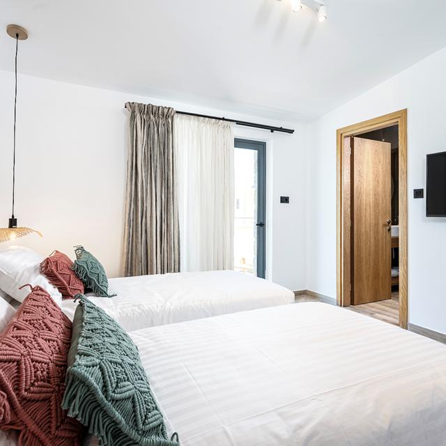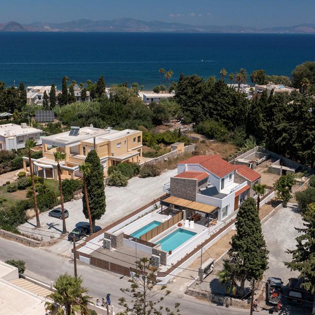 Rastoni Villas with private pool by Aegean Houses zijn mooie, luxe villas in de buurt van Kos-stad. Hier kun je werkelijk de hele dag heerlijk luieren met een boekje of lekker drankje bij je privézwembad. Wil je toch de deur uit, wandel dan naar het strand van Psalidi, verken Kos-stad met je huurfiets (3 dagen inbegrepen) of ontdek de rest van het leuke eiland. Wat je ook gaat ondernemen, aan het einde van iedere dag kom je weer thuis in je prachtige, moderne villa.