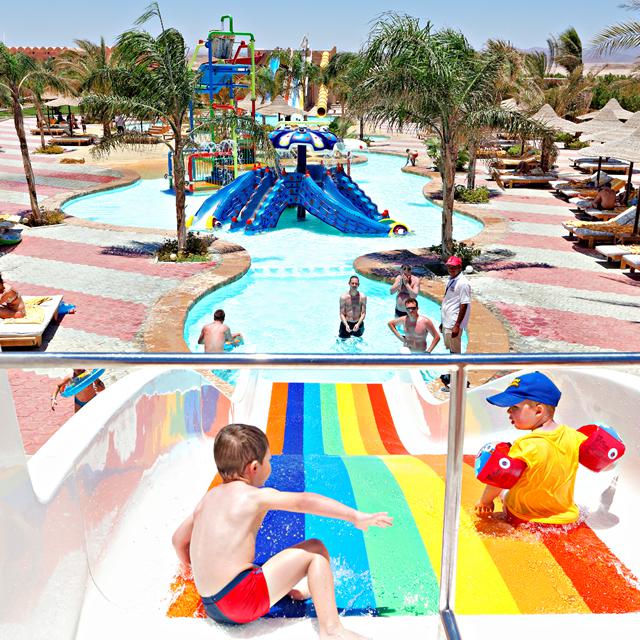 Dit ruim opgezette hotel is er een van vele hoogtepunten. Zo is er een uitstekend all inclusive programma met spannende themabuffetten en live cooking, een geheel nieuwe peanutsbar, een shishabar waar je waterpijp kunt roken en een uitgestrekt privéstrand. Maar voor de meeste vakantiegangers zorgt het grandioze zwemparadijs toch wel voor de meeste opwinding. Met spectaculaire waterglijbanen en hilarische waterspellen beleeft jong en oud ongekend veel waterplezier. Wil je er een keer op uit? Neem dan op vrijdag de shuttlebus van het hotel naar de gezellige jachthaven ‘Port Ghalib’.