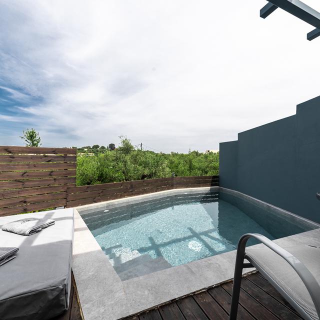 De kamers en suites zijn eenvoudig en verzorgd ingericht, met alles wat je nodig hebt voor een comfortabel verblijf. Kies bijvoorbeeld voor een tweepersoonskamer, een suite met zeezicht of verwen jezelf met een kamer met privézwembad. Er is voor ieder wat wils, of je nu op zoek bent naar eenvoud of een beetje extra luxe.